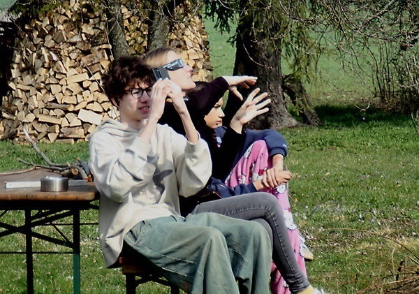 Am Samstag, dem 28. März 2025, beobachteten wir, die Astronomie-AG der Mildred-Harnack-Schule, in Letschin im Oderbruch eine partielle Sonnenfinsternis. Wir waren vier Schülerinnen und Schüler sowie zwei Lehrkräfte. Zu Beginn verdeckten leichte Wolken den Himmel, doch sie zogen rasch ab. So hatten wir freie Sicht auf das Ereignis und schossen einige gelungene Fotos.