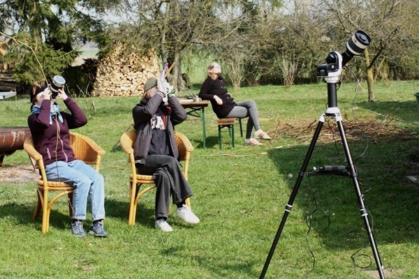 Am Samstag, dem 28. März 2025, beobachteten wir, die Astronomie-AG der Mildred-Harnack-Schule, in Letschin im Oderbruch eine partielle Sonnenfinsternis. Wir waren vier Schülerinnen und Schüler sowie zwei Lehrkräfte. Zu Beginn verdeckten leichte Wolken den Himmel, doch sie zogen rasch ab. So hatten wir freie Sicht auf das Ereignis und schossen einige gelungene Fotos.