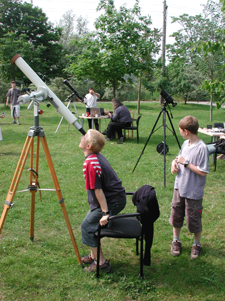 Schon am Montagabend fanden sich 11 Schüler in der Pension Wilhelmsaue ein und genossen den Vorabend beim Grillen und Erzählen. Gegen 23:30 war es außerdem so klar geworden, das wir doch noch mal die Fernrohre aufstellten und ein paar Sternbilder fotografierten.